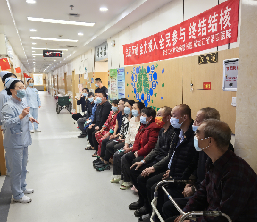 活动伊始,由病区护士长高明霞率先开场,紧扣2026年世界防治结核病日“全面行动 全力投入 全民参与 终结结核”核心主题,向在场患者及家属详细介绍了本次活动的背景、目的及意义,强调结核病防治的重要性与紧迫性,呼吁大家重视呼吸道健康,主动学习防控知识,全员携手筑牢健康防护屏障。