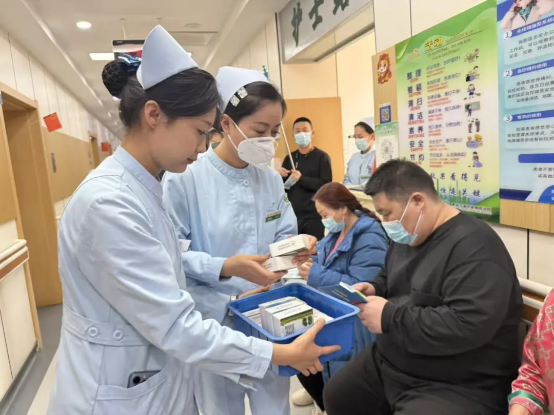 宣讲环节结束后,护理团队为在场患者及家属发放结核病防治宣传单页,方便大家课后巩固知识、随时查阅;同时精心准备了实用小礼品,以暖心举措传递医护关怀,拉近护患距离,让患者及家属在学习健康知识的同时,感受到病区的贴心与温暖。