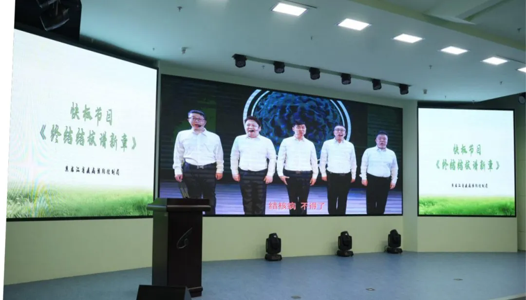 参观结束后,全体人员共同观看省级结核病防治宣传片,全面回顾我省结核病防治工作的攻坚历程。通过快板节目《终结结核谱新篇》及哈尔滨石油学院百千万志愿者演唱《奔跑》,将专业结核病防控知识转化为易懂易记的传播内容,有效提升了科普传播的实效性。
